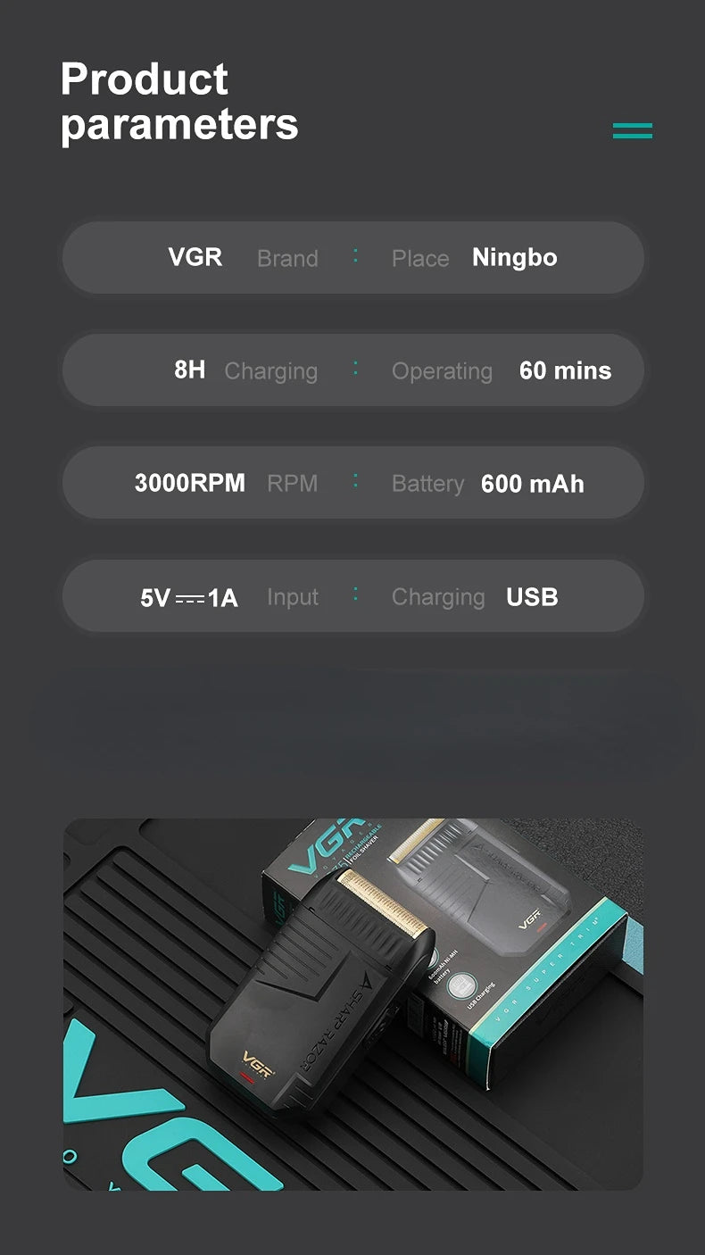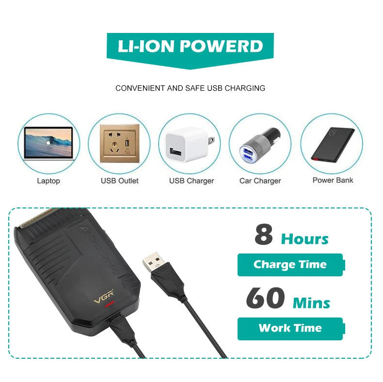 VGR V-375 Professional Foil Shaver – Rechargeable Electric Razor & Beard Trimmer for Men