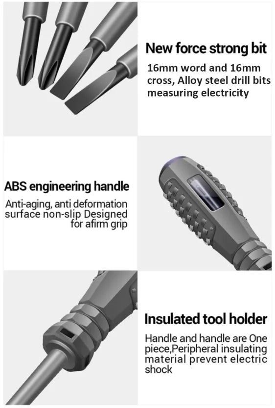Dual Function Design: Includes one flat-head and one cross-head screwdriver, both equipped with integrated voltage test capability (12–220 V AC/DC).